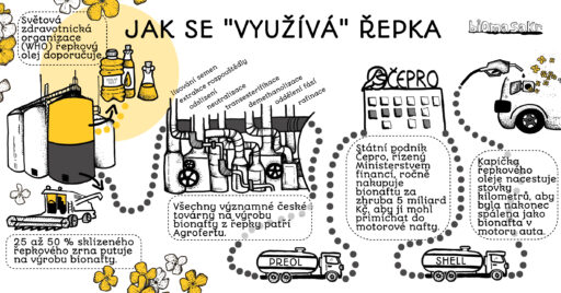 O zrušení povinného přimíchávání biopaliv do benzinu a nafty se pokoušeli v roce 2019 opoziční poslanci v čele s Piráty, vláda Andreje Babiše však jejich návrh odmítla. Jak poukazují tvůrci projektu, všechny významné továrny na výrobu bionafty z řepky patří Agrofertu založenému současným premiérem (viz infografika). Server Seznam Zprávy loni uvedl, že Agrofert měl v roce 2019 u státní firmy Čepro podíl na dodávkách biosložek 54 procent.