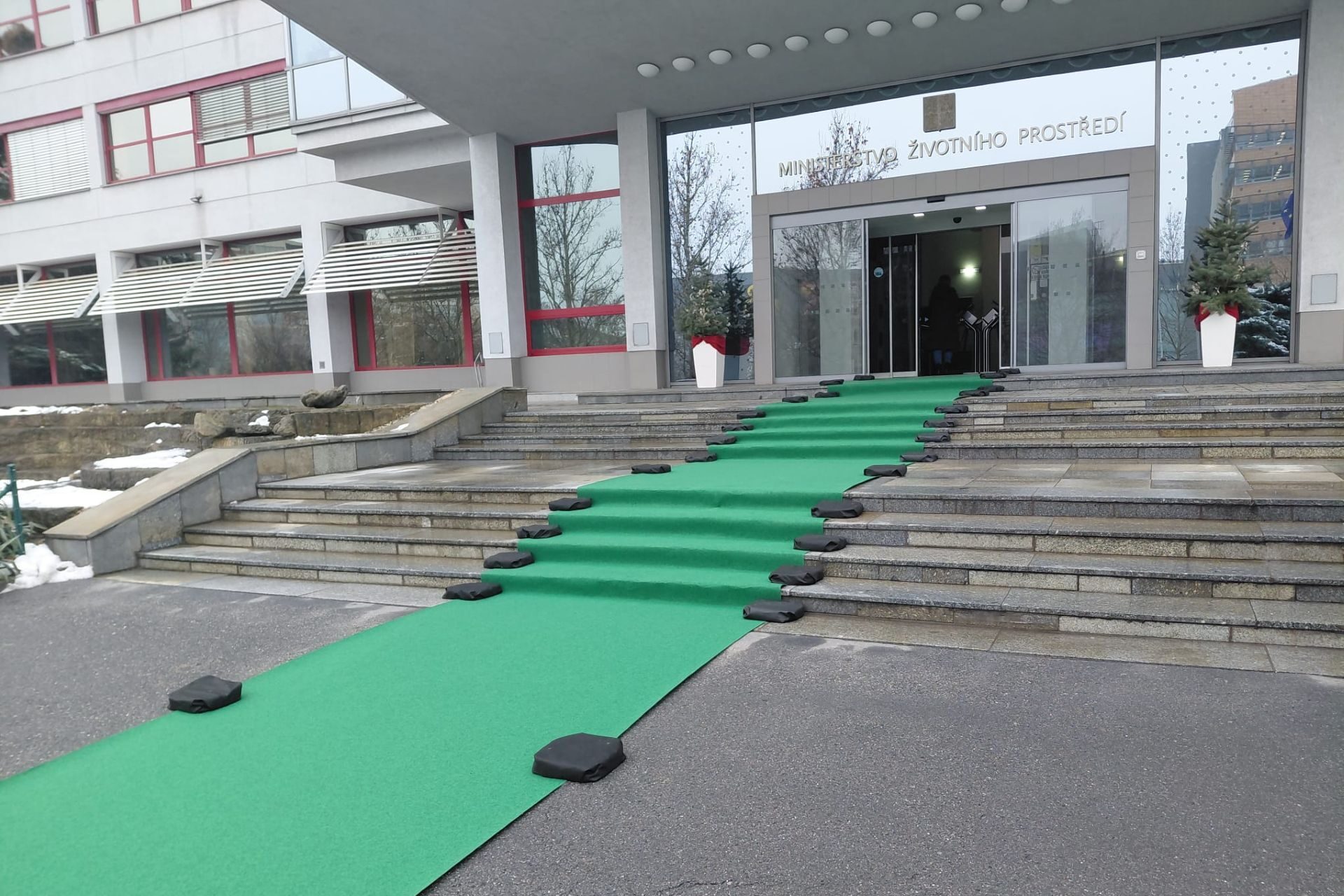 Zelená se ale motoristům možná dostane pod kůži. Při včerejší státní návštěvě slovenského ministra životního prostředí Tomáše Taraby totiž motoristé nejprve nechali natáhnout k sídlu resortu koberec zelené barvy. A posléze Macinka ohlásil, že „Green is new red“.
