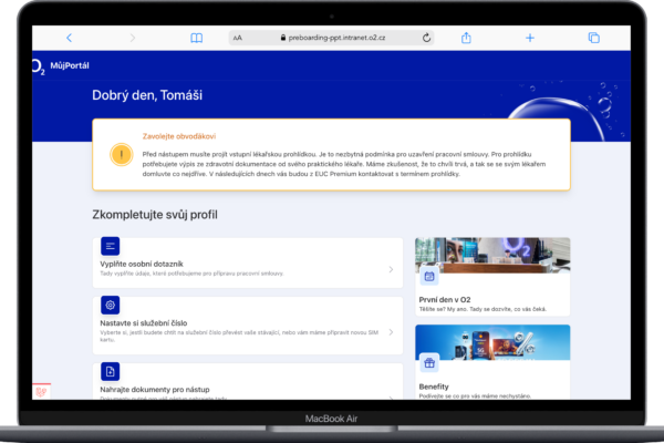 Je přehledná a dostupná. Zaměstnanec, který nastupuje do O2, vyřídí vše potřebné v klidu a z pohodlí domova. Buď ze svého telefonu nebo z počítače. Vše má pak přístupné kdykoliv a kdekoliv přehledně na jednom místě.