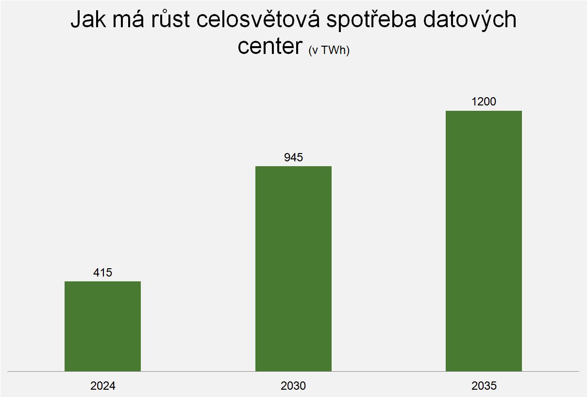 Už teď je ale jasné, že datová centra zaplatí za nový zdroj energie téměř jakoukoliv cenu. Podle loňské zprávy Mezinárodní agentury pro energii (IEA) se celosvětová spotřeba elektřiny datových center za pět let více než zdvojnásobí a v roce 2030 bude činit 945 terawatthodin. To je zhruba tolik, kolik ročně spotřebuje celé Japonsko. Česku stačí ani ne desetina.