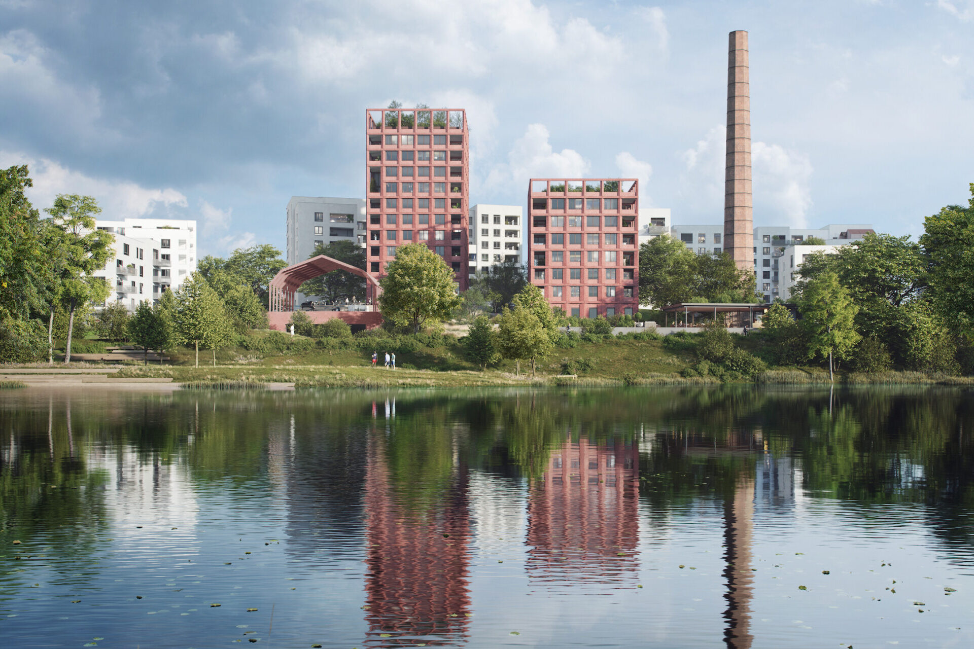 Starý tovární komín zůstane na místě dál a stane se středem celého areálu, kde má vyrůst v sedmi etapách téměř osm set bytů. Komínu bude dělat společnost přilehlé centrální náměstí, které má sloužit nejen residentům, ale i přilehlým Modřanům. „Navrhujeme zde také multifunkční krytý veřejný prostor, který odkazuje na historickou výrobní halu původního cukrovaru a který bude sloužit pro pořádání společenských akcí,“ uvedl architekt Ondřej Mundl z architektonického studia Chybik+Kristof.