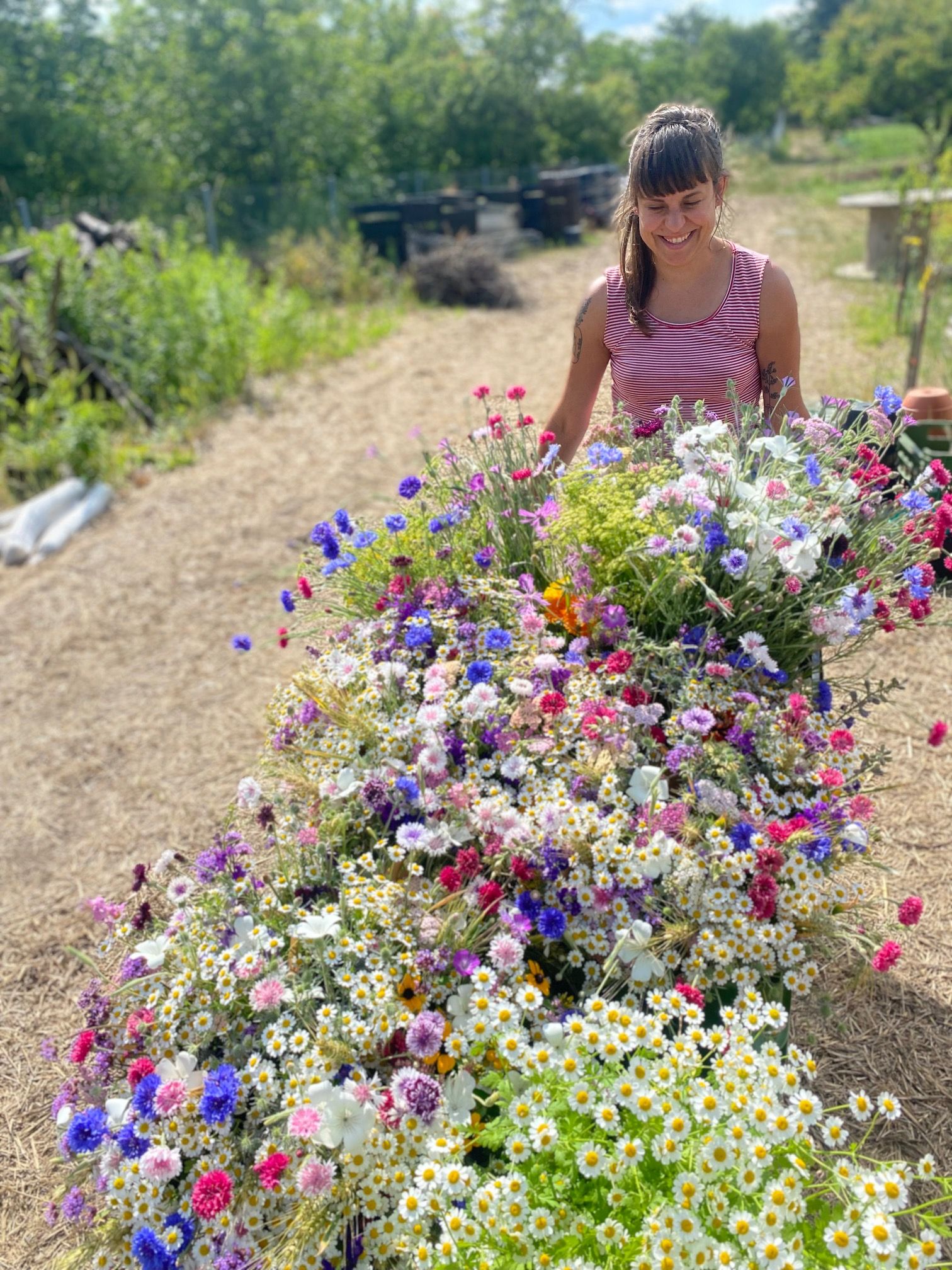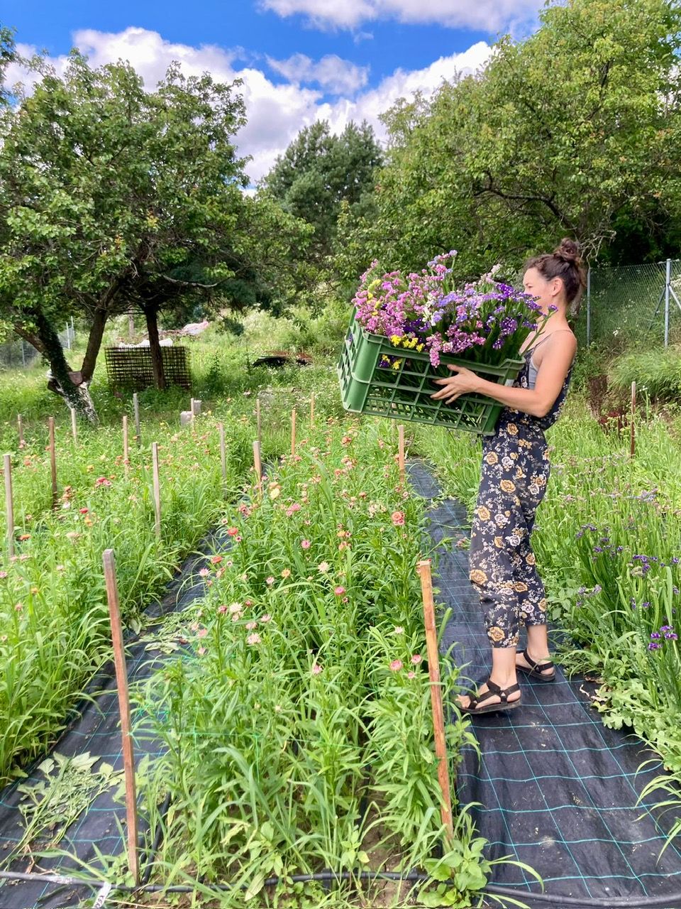 Od loňského roku se na pozemku hospodaří regenerativně, na květinovém poli pracují dvě zaměstnankyně.  „Snažíme se zaplňovat záhony meziplodinami,“ popisuje Střechová, která letos plánuje na poli vypěstovat sedm tisíc tulipánů a v zemi má vysazených pět tisíc pryskyřníků.