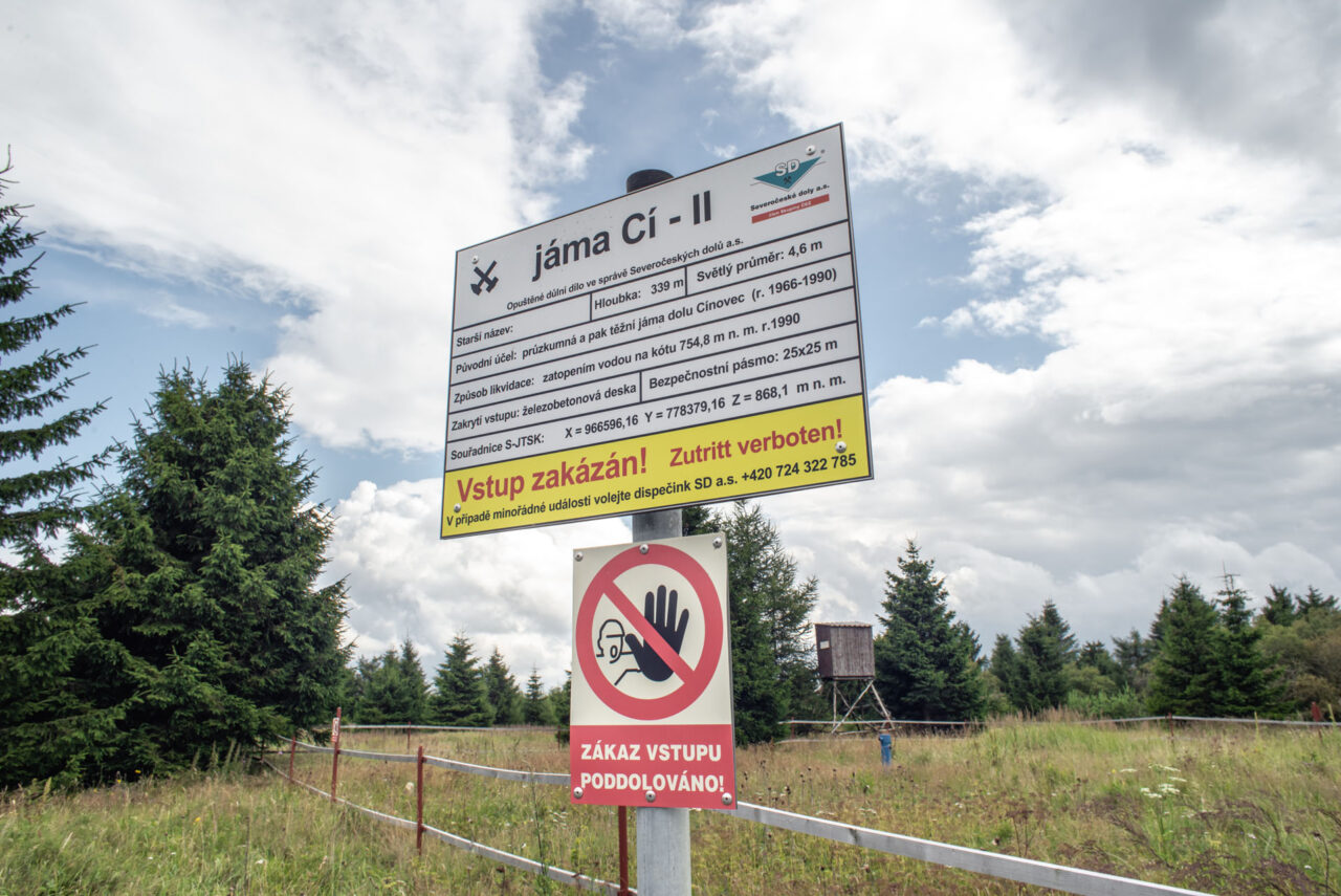 Cínovecký kopec, česko-německou hranicí rozdělený na dvě části, je prošpikovaný starými důlními díly. Stovky let se tu těžil cín a wolfram, horníci za sebou zanechali množství šachet. Některé nejsou na žádných důlních mapách.