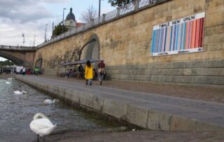 Obrazem: Sto šestnáct pruhů na pražské Náplavce varuje před klimatickou krizí