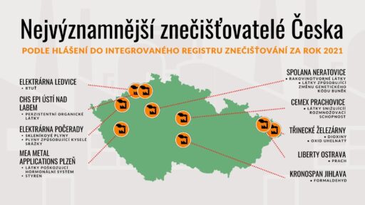 Na nejvyšších místech v žebříčcích znečišťovatelů za rok 2021 figurují zejména provozy z Ústeckého, Moravskoslezského a Pardubického kraje. Nejčastěji se v žebříčcích objevila Liberty Ostrava, po ní elektrárny Prunéřov, Počerady, Chvaletice, Tušimice a Ledvice. Spolana Neratovice enormně zvýšila emise rakovinotvorného vinylchloridu do ovzduší o téměř sedm a půl tuny za rok.