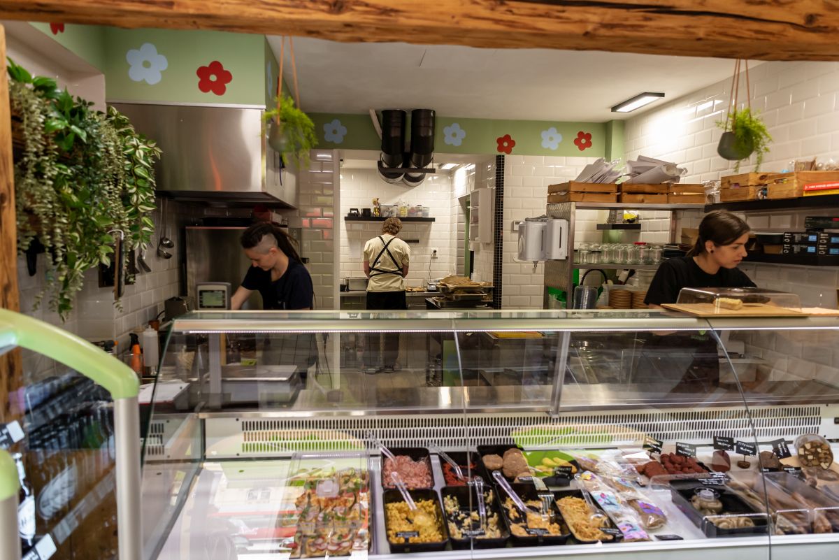 Nabídka teplých jídel v kamenné prodejně se pravidelně obměňuje. V listopadu kolem svátku svatého Martina byla na menu třeba veganská husa, jindy si zákazníci mohou dát langoš s trhanou rostlinnou kachnou. Mezi stálice patří veganský holandský řízek v housce nebo sekaná.